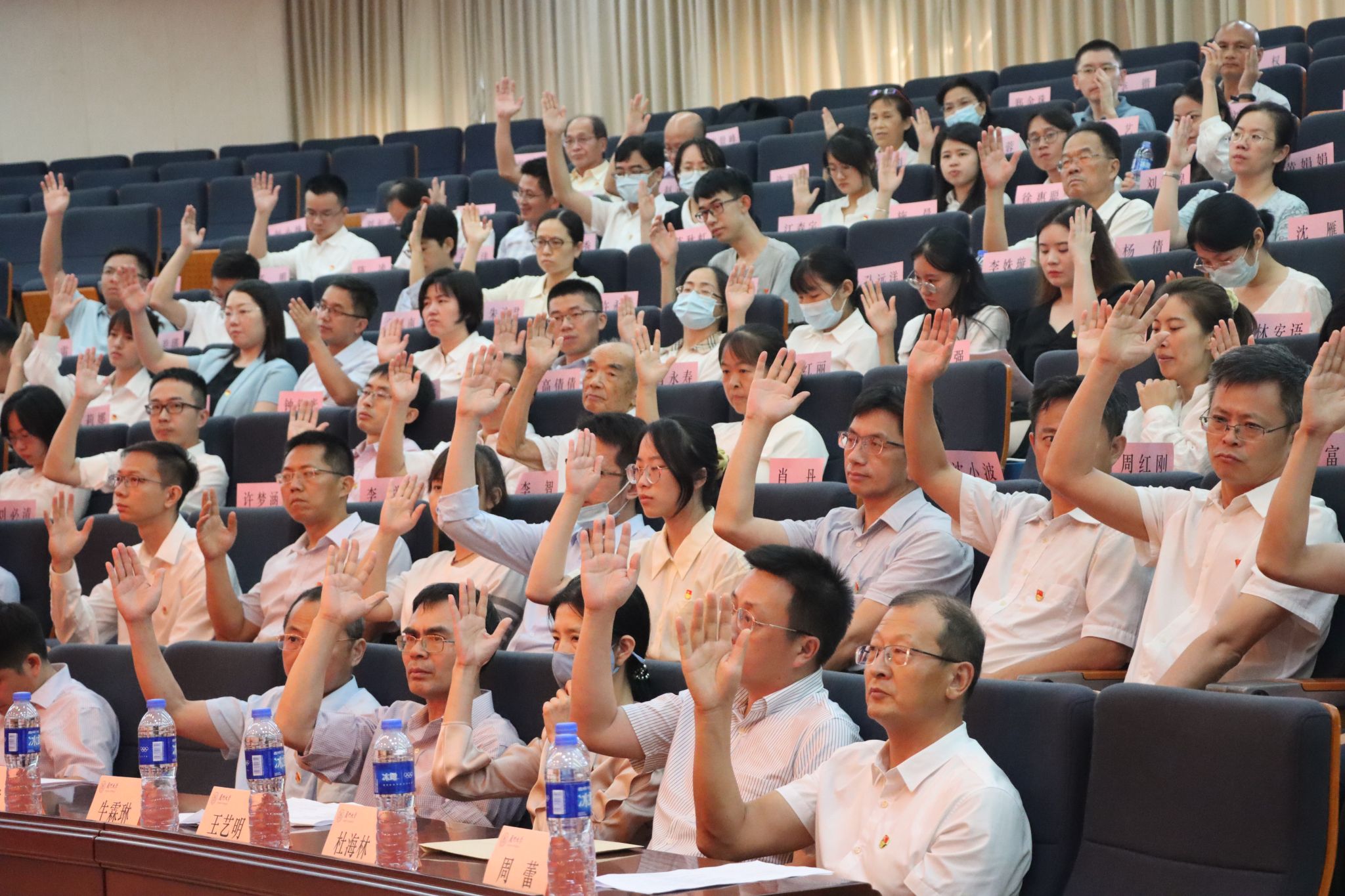 7月18日,中国共产党厦门大学经济学院党员代表大会在经济楼举行。校基层党建工作联络员郑保东,经济学院原党委书记张兴国莅会指导,学院非党员领导班子成员等特邀代表出席大会开幕式暨第一次全体会议,113名师生党员代表参加大会。会议分别由大会主席团执行主席黄鸿德、杜海林、周蕾主持。