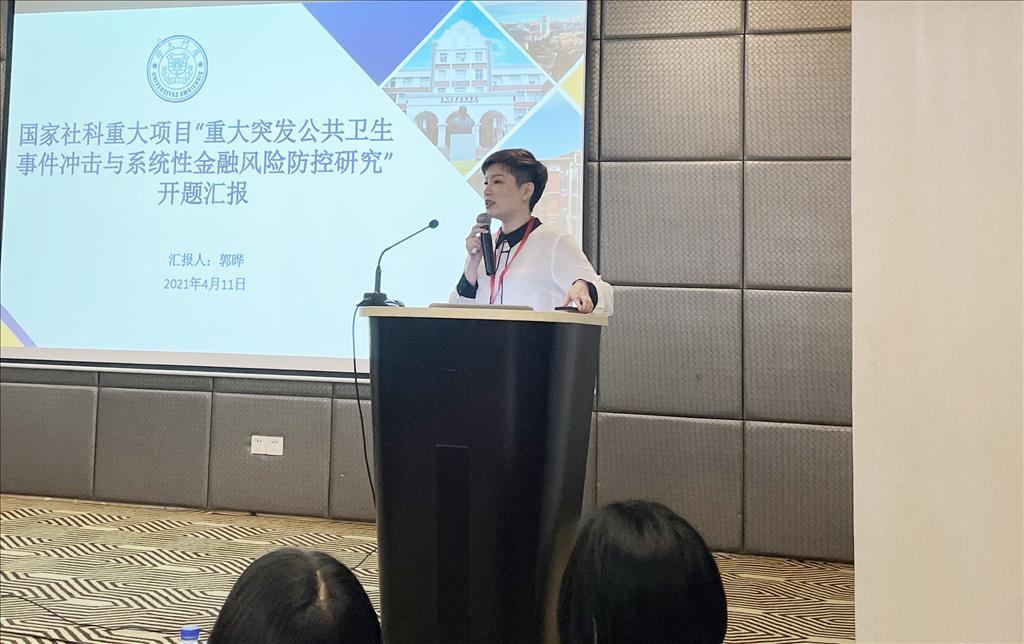 2020年度厦大经济学科获得两项国家社科基金重大项目立项,分别是:陈国进教授主持的课题《罕见灾难冲击、宏观经济下行与宏观经济政策调控研究》和郭晔教授主持的课题《重大突发公共卫生事件冲击与系统性金融风险防控研究》。2021年4月11日,课题组在厦门鹭江宾馆三楼英华厅举行开题会,邀请二十余位国内高校和研究机构知名专家学者莅临现场,分享宝贵的意见或建议,为后续课题的开展提供专业咨询。