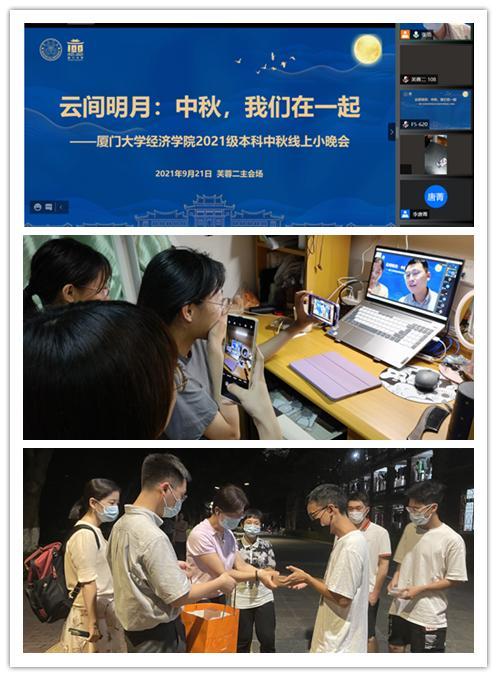 今年的中秋佳节,因为疫情,同学们都无法回家和家人、朋友相聚,不少2021级新生都是第一次离开家乡,离开父母过中秋。为此,学院专门在芙蓉二宿舍设置主会场,在南光健康观察区设置分会场,举办了“云间明月:中秋,我们在一起——厦门大学经济学科2021级本科中秋线上小晚会”。同学们分散在宿舍,相约在云端,共同观看了2021级本科新生同学带来的长笛演奏、诗歌朗诵、吉他弹唱、歌曲合唱等节目,让同学们充分感受到了厦门大学经济学科这“新家”的温暖。学院党委副书记周蕾老师为同学们讲述习近平同志在厦门工作期间,在中秋节骑着自行车到芙蓉二宿舍给同学们送月饼的故事,并寄语同学们在疫情当下,更要牢记“自找苦吃”的精神,经世治邦,百炼成钢,砥砺前行,共克时艰。
