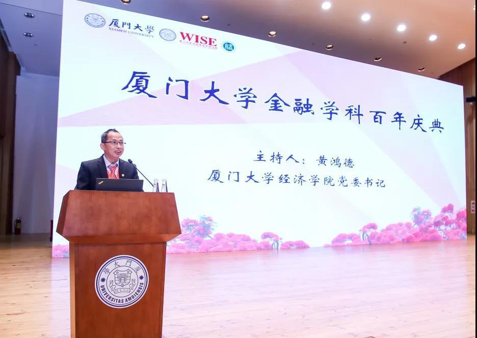 厦门大学金融学科百年庆典由厦门大学经济学院党委书记黄鸿德主持,厦门大学党委常委、副校长杨斌教授,中国金融学科终身成就奖、厦门大学南强杰出贡献奖获得者张亦春教授,福建省人大常委会会党组书记、副主任雷春美,厦门大学经济学院、王亚南经济研究院副院长(主持工作)周颖刚教授先后致辞。
