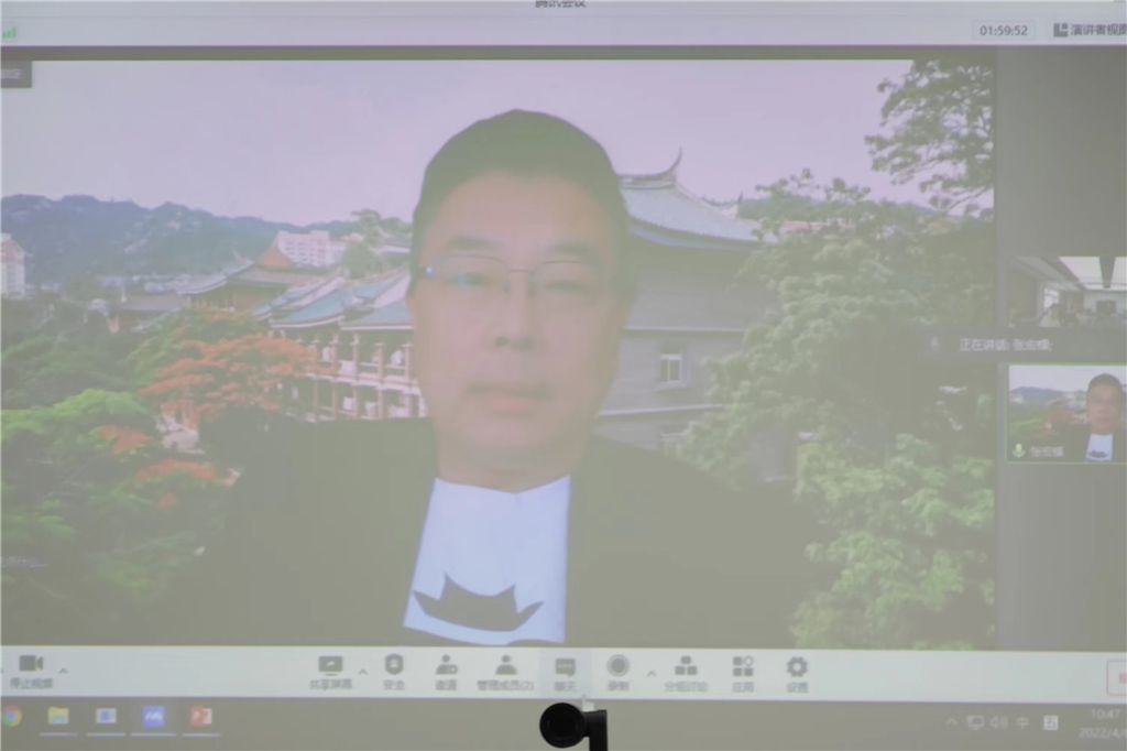 会议伊始,师生代表与张宏樑学长视频连线交流。“习近平总书记致厦门大学建校100周年贺信内涵丰富、思想深邃、意蕴深远,是悟思想、学方法、受教育的生动权威教材。我们要通过长期学习,反复学习,深刻感悟习近平总书记重要贺信精神的深刻内涵。”张宏樑学长谈了自己的学习体会,并与大家回忆了他在厦大求学期间,习近平同志关心指导经济学科师生的暖心故事。张宏樑学长还勉励经济学科师生要坚持马克思主义的立场、观点、方法,要重视历史、研究历史、以史为鉴、鉴古知今,要坚持学习、学以致用,要埋头苦干、真抓实干,用习近平总书记一贯提倡的“一张蓝图绘到底”的重要工作方法和工作作风指导学习和工作。
