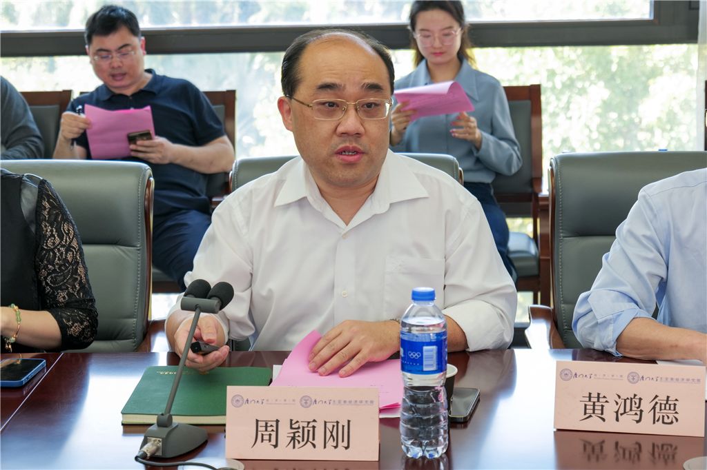 经济学院党委书记黄鸿德主持调研座谈会,经济学院和王亚南经济研究院副院长(主持工作)周颖刚对经济学科的基本概况做汇报,详细介绍了经济学科在学科建设、人才培养、师资建设、科学研究、社会服务、对外交流与合作等方面的历史发展和主要成绩,阐明了经济学科目前存在的问题以及下一步的前进方向。