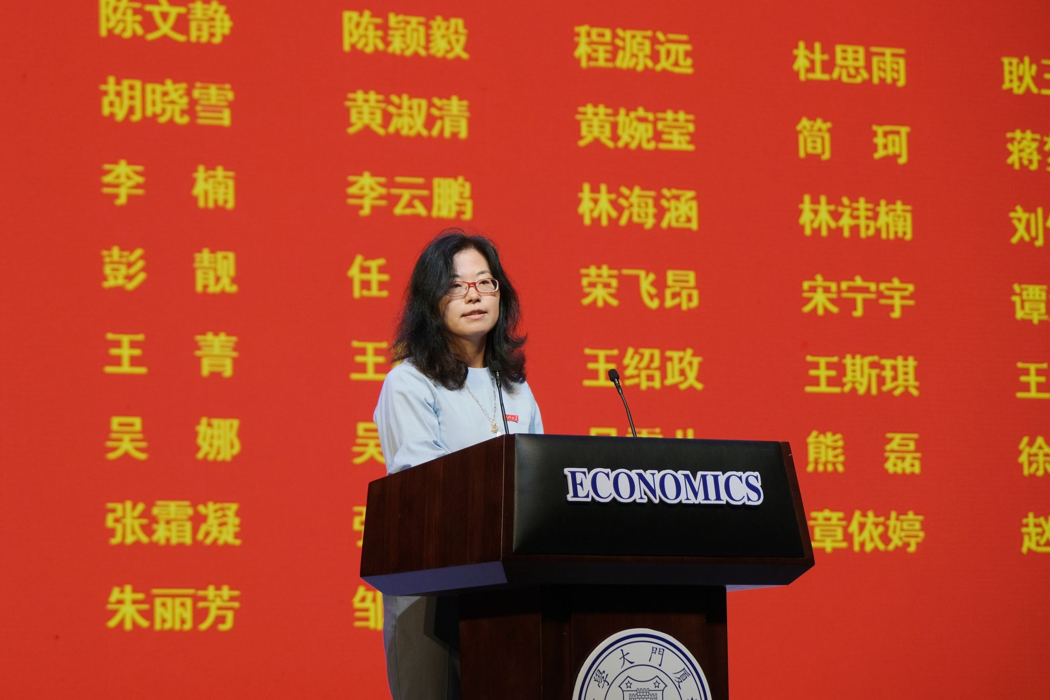 经济学院党委副书记周蕾宣读《关于表彰厦门大学经济学科2022届优秀毕业生的决定》↑