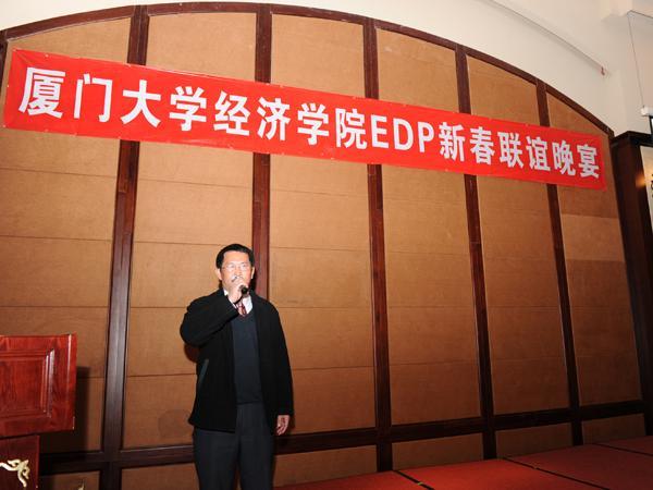 2012年2月11日晚,厦门大学经济学院EDP新春联谊晚宴”在美丽的帝元维多利亚大酒店成功举办。晚宴由经济学院EDP中心首期国际资本运作101班召集,邀请第二期国际资本运作班、两岸金融与资源运作海沧班、金融学研究生课程班逾150名学员齐聚一堂、共贺新春,畅谈龙年发展蓝图,宴会厅座无虚席,氛围非常融洽热烈。经济学院党委书记雷根强教授、张琥副院长、原经济学院党委书记张兴国教授等老师受邀出席。