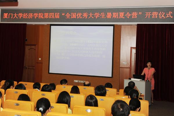 厦门大学经济学院“全国优秀大学生经济学暑期夏令营”旨在促进中国高校优秀大学生之间的学术和思想交流,加强青年学生对经济学科的了解,特别是为了从中选拔出类拔萃者免试进入经济学院继续深造,主要面向全国重点高校本科三年级的经济学学子。本次夏令营是2009年以来厦门大学经济学院连续组织开展的第四届活动,共收到海内外860余名优秀本科生的报名申请,经过层层选拔,来自近40年全国重点院校的150多名同学获得了来之不易的机会。据悉,在夏令营未来的三天中,经济学院为营员们精心准备了丰富多彩的学术讲座和交流活动,促进学子们与经济学院的相互了解和交流,让学子们领略到厦门大学经济学院的学科建设、学生培养等诸多细节、优势以及独特的文化与魅力,经济学院也将从中选拔出部分优秀学子免试攻读硕士研究生,共同促进厦门大学经济学科传承与发展。