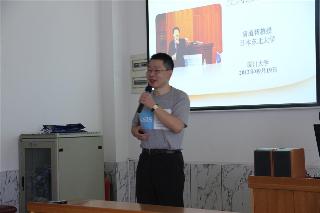 9月19日上午,宏观经济研究中心双周Seminar 2012-2013学年第一讲在经济楼D309举行,日本东北大学的曾道智教授做了题为“空间经济学”的演讲,宏观经济研究中心主任李文溥教授主持了本次Seminar。