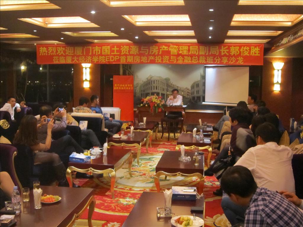 首期房产班学员、厦门市国土资源与房产管理局副局长郭俊胜应邀为大家带来了题为《厦门房地产市场若干热点问题》的主题报告,他从厦门房地产市场的特性、政策走向、发展现状、未来趋势预测等方面做了详细的分析和阐述,演讲结束后,同学们围绕房地产热点问题,畅所欲言,收获启迪。