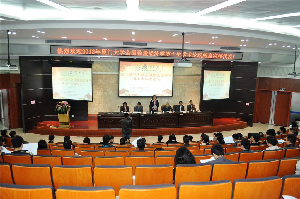 12月8日上午,厦门大学2012全国数量经济学博士生学术论坛开幕式在经济楼新楼N402报告厅举行。本次论坛由王亚南经济研究院、经济学院金融系、计量经济学教育部重点实验室(厦门大学)、福建省统计科学重点实验室(厦门大学)联合主办,旨在利用我校经济学科在计量经济学、统计学、金融学和应用计量经济学的学科优势和国际学术资源为全国年轻学者提供了解和把握现代经济学和现代数量经济学的学术发展动态和最新研究成果的机会。