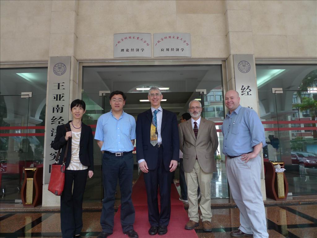 Leeds教授主要从事体育经济的研究,本次报告独特的研究角度引起了在场学生浓厚的兴趣,大家踊跃提问,Leeds教授一一作答,现场气氛十分活跃。报告结束后,方颖和经济学院国际教育合作中心主任Chris White等热情接待了来宾,双方都对未来的合作充满希望。天普大学和厦门大学从2008年合作至今,一直关系良好。厦门大学每年选派15名优秀学生前往天普大学交流,这些学生的优异表现也给天普大学的教授们留下了深刻的印象。