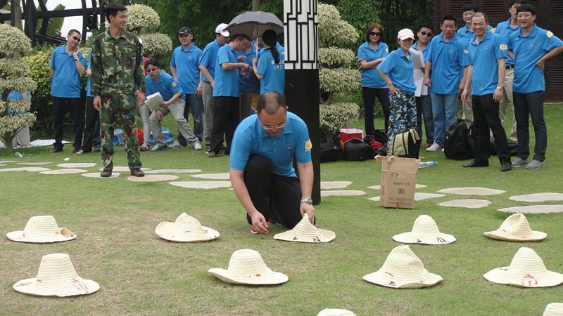 第二个项目进行的《水果连连看》,草坪上放着40个斗笠,每个斗笠的下方摆放着各种不同的水果,每组在每轮排出一名队员翻开斗笠,当翻出相同水果时就可以把水果带回到团队中盖回斗笠,若翻出不同水果则原地盖回;将所有水果找齐完毕后,获得水果数量最多的团队为胜。这个环节考验的是队员的团队合作精神和对细节的观察能力,在大家的共同努力下,每个小组的组员均斩获了一些水果,享用了美味的水果。