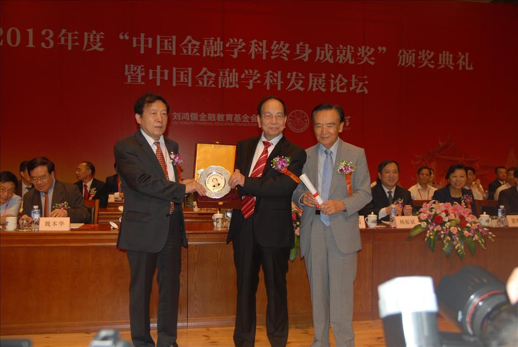 “中国金融学科终身成就奖”由刘鸿儒金融教育基金会设立,奖金高达100万元人民币,旨在促进中国金融学科建设,表彰在金融学科领域做出突出贡献的老前辈。首届大奖于2010年评选、2011年初颁发,迄今已举办了四届,这是中国第一个为表彰在中国金融学科建设中作出突出贡献的学者而设立的大奖,被誉为“中国金融学科诺贝尔奖”。本届大奖获奖者有三位,他们分别是中国人民大学的周升业教授、西南财经大学的曾康霖教授和我校的张亦春教授,他们在各自的领域中都为中国金融学科建设和金融学理论发展做出了重大的贡献。