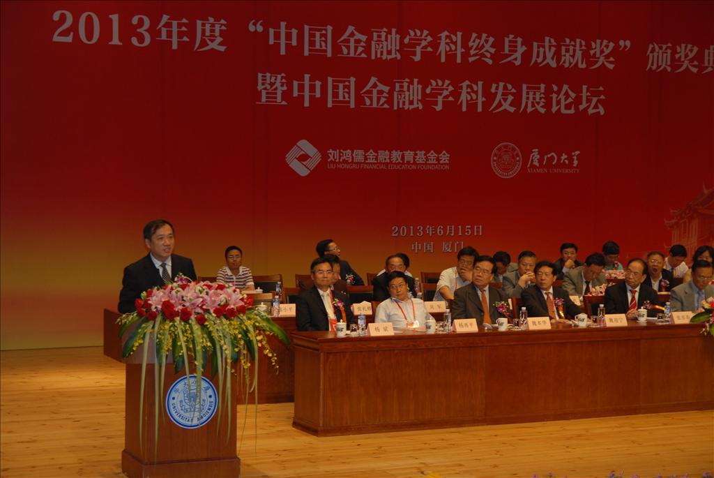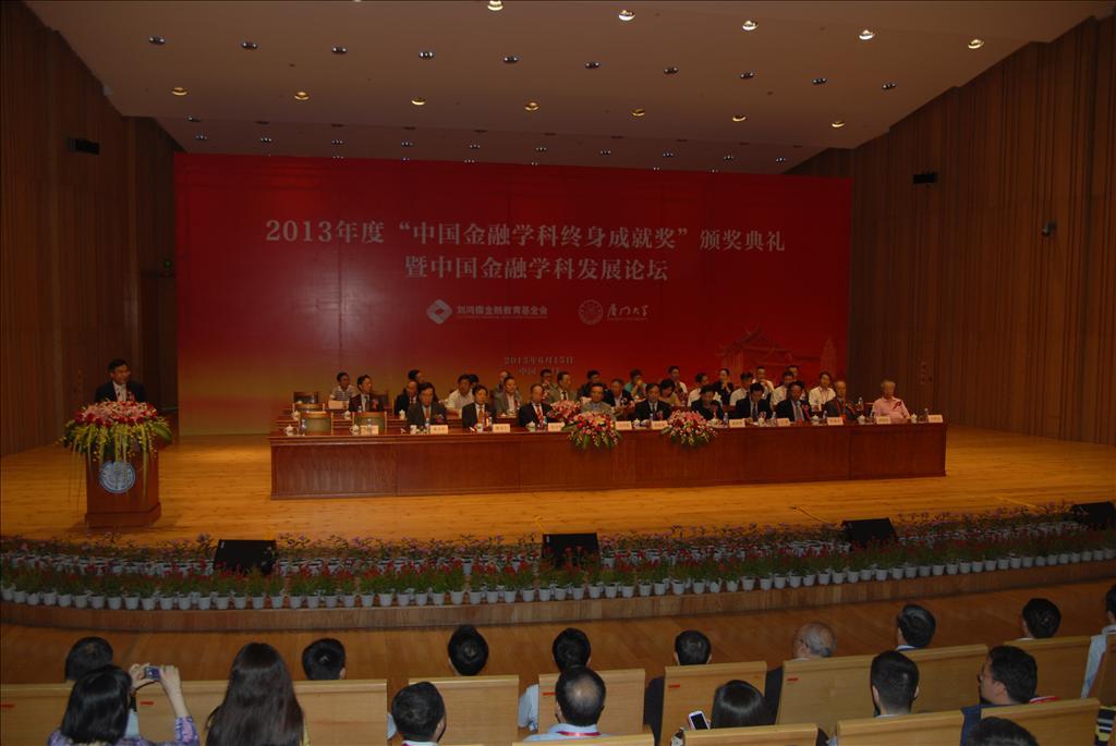 著名金融学家、教育学家张亦春教授荣获2013年度“中国金融学科终身成就奖”。颁奖庆典于6月15日在厦门大学科学艺术中心隆重举行。庆典由厦门大学副校长杨斌主持,莅临此次庆典的嘉宾包括全国政协委员桂敏杰、刘鸿儒金融教育基金会名誉理事长刘鸿儒、中央财经大学校长王广谦、民生银行行长董文标、兴业银行行长李仁杰、厦门大学党委书记杨振斌等高校、政界、业界人士,约计500人。