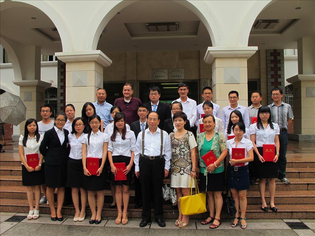 最后,获奖者、列席者与张亦春教授在温和的细雨中合影留念,本次颁奖典礼圆满地落下了帷幕。