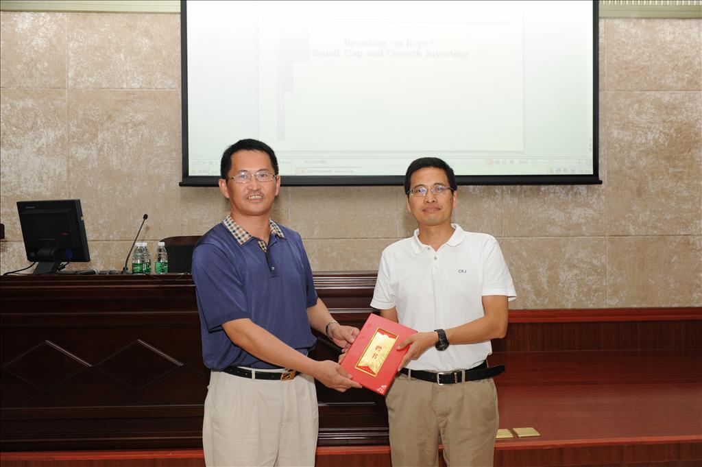 近日,WISE与经济学院敦聘哈尔滨工业大学深圳研究生院王苏生博士为兼职教授,并邀请其于7月开设《投资哲学》课程。7月22日晚,由WISE副院长陈国进主持,经济学院党委雷根强书记为其颁发了兼职教授聘书。