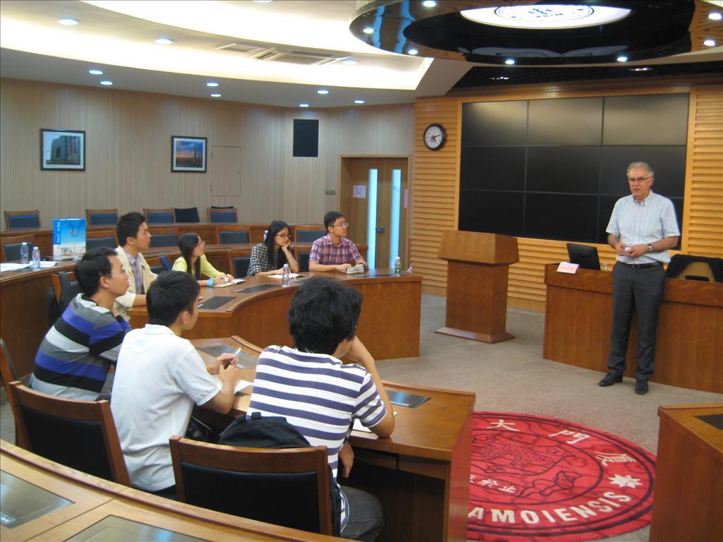 会后,Findlay教授会见了2013级经济学院及王亚南经济研究院留学项目、经济学院优秀本科生国际交流项目学生。Findlay教授向学生们介绍了阿德莱德大学的校园环境及交通条件,重点说明了该校的课程设置和教学方法并对学生出国后的学习生活进行指导。现场气氛活跃,不少学生就各自所关心的话题和教授进行互动交流。