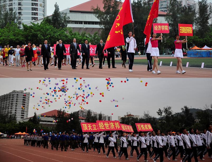 11月1日,厦门大学第48届学生田径运动会、第17届教职工运动会在演武田径场拉开帷幕。踏着激昂的运动员进行曲,由院旗、学院领导、全民运动展示方阵、教职工方阵组成的经济学院、王亚南经济研究院师生代表队迈着整齐划一的步伐踏进赛场,一声“经世济邦,百炼成钢,顶天立地,锐不可当”口号完美诠释了两院师生奋勇争先、积极进取的品质,展现了师生朝气蓬勃、健康向上的精神风貌。