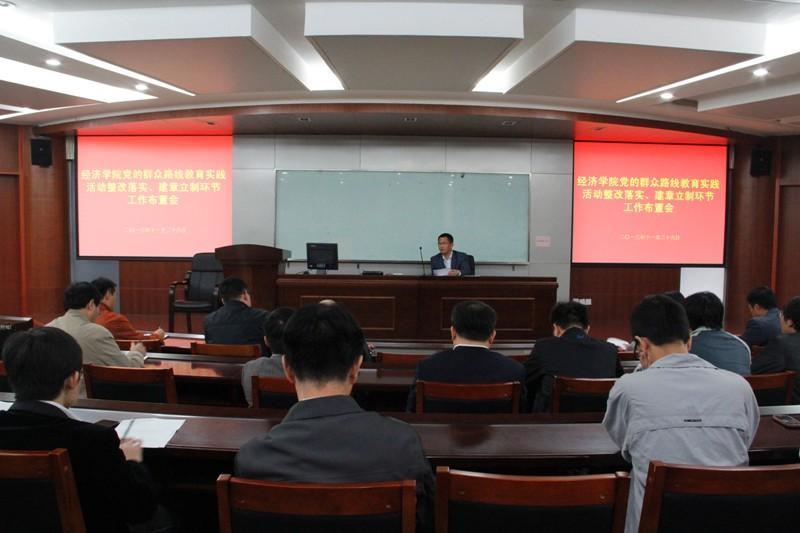11月26日下午,经济学院中心组成员在经济楼N302召开党的群众路线教育实践活动整改落实、建章立制环节工作布置会。学院党政领导班子成员,各系主任、副主任,党支部书记等参加了会议。