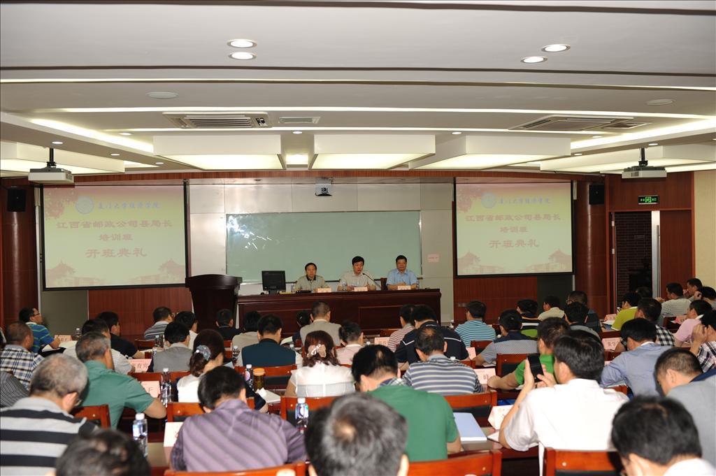 6月9日上午,江西省邮政公司县局长培训班开学典礼在经济楼N203举行。江西省邮政公司党组书记,经济学院、王亚南经济研究院(WISE)洪永淼教授,以及来自江西省全省83位县邮政局局局长等领导和学员出席开学典礼。开班典礼由江西省邮政公司人力资源部经理刘鸿主持。
