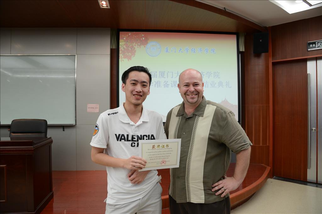 在结业典礼上,方颖分享了自身留学的体验,殷切希望项目毕业生能珍惜经济学院为他们创造的良好条件,并提出了几点建议:一是出国后要相信自己的能力,同学们能通过一年的准备课程顺利入读世界名校,就是自我能力的最好证明,应该有足够的自信克服以后遇到的所有困难;二是要树立自强独立之精神,在国外相当宽松的教育环境中懂得自律,自我管理;三是在出国前应进一步确立自己的学习目标,对出国之后的学习做好提前安排。Dr. Chris White则叮嘱学生出国后要严把学术规范关,抓住留学良机,他日学成后成为经济学院和父母师长之骄傲。张宇老师诚恳告诫学生出国不仅仅是镀金,最重要的是要真才实学,这样才能在今后的竞争中获得属于自己的一席之地。项目班主任也寄语学生出国后要抓住机会锻炼自己,对出国后的住宿、选课等方面都提出建议并为学生提供已在国外学校的学长学姐的联系方式,建立对接联系帮助。