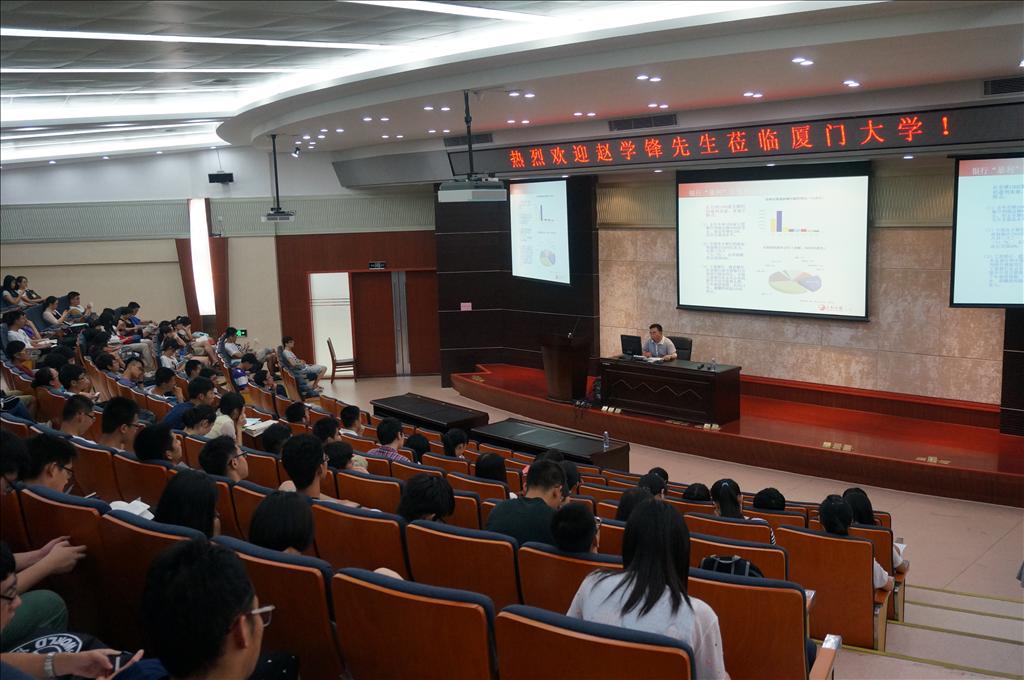 7月13日至14日,《金融时报》党委委员、副总编辑,厦门大学校友、经济学院兼职教授赵学锋在经济楼N402先后作了题为《利率市场化改革与银行“暴利”》和《互联网金融的发展与监管》的2场讲座,富有启发性的讲座使在座同学都受益匪浅。