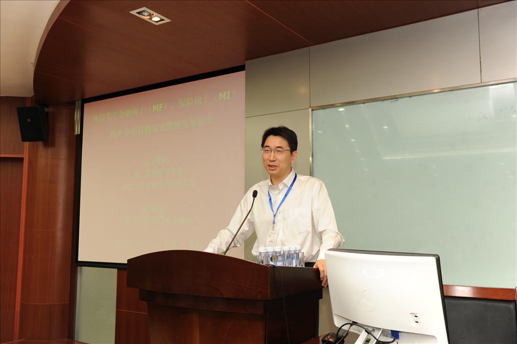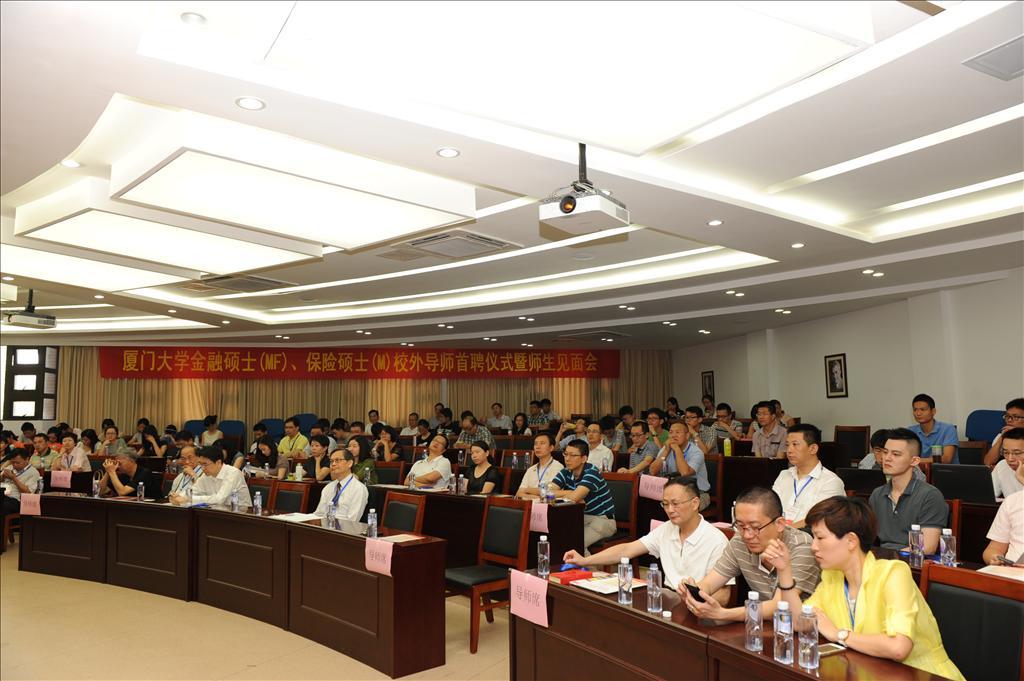 7月19日上午9时,由厦门大学经济学院、王亚南经济研究院主办,厦门大学经济学院金融系承办的厦门大学金融硕士(MF)、保险硕士(MI)校外导师首聘仪式暨师生见面会在经济楼N302举行。参加此次仪式暨师生见面会的有厦门大学国家级金融重点学科学术总带头人张亦春教授、国家级金融重点学科保险学专业学术带头人林宝清教授、经济学院党委书记雷根强教授、院长助理兼金融系主任郭晔教授等院系领导和老师,上海凯石投资管理有限公司总经理陈继武博士、工银安盛人寿保险有限公司总经理张文伟博士等三十余位业界嘉宾以及金融硕士、保险硕士的同学们。