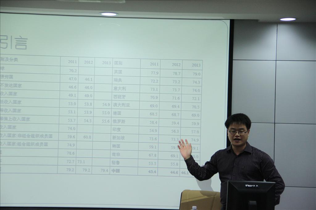 11月3日下午,教育部人文社会科学重点研究基地——厦门大学宏观经济研究中心双周Seminar2014-2015学年秋季学期第三讲在经济楼A501如期召开,中心青年教师王燕武基于自己最近的研究作了题为“中国服务业城市共同集聚及其影响因素”的报告。中心教师陈贵富组织并主持了此次Seminar。