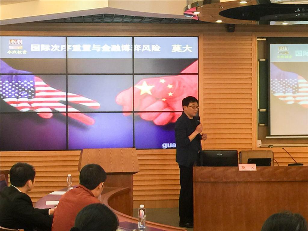莫大老师昨日给大家带来题为“国际次序重置与金融博弈风险”的讲座,从当今国际上主要问题国际地缘政治博弈,到全球经济形式分析,并进一步拆解中国经济形势与国际政治格局的密切联系,以及对国内未来投资机会的详细解读,莫大老师精准的全局分析,独到的经济见解,博得了满堂彩,原本五点结束的讲座,在大家的一直呼吁下,延迟到了六点才圆满结束。