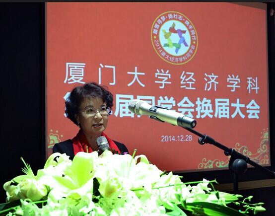 28日下午3:00,厦门大学校歌奏起,厦门大学经济学科第二届同学会换届大会正式拉开帷幕。首先由厦门大学王亚南经济研究院副院长赖小琼教授致辞,赖院长对长期关心和支持厦门大学经济学科同学会发展的第一届领导班子和广大会员表示衷心的感谢。她表示,对于即将产生的新一届同学会领导班子,学院将一如既往地给予最大的支持,也希望新的一届同学会领导班子能够继续发扬务实、高效、创新的工作态度,为广大的同学会会员提供更为细致周到的服务。