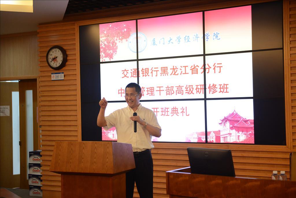 5月18日上午,厦门大学经济学院——交通银行黑龙江省分行中层管理干部高级研修班开班典礼在经济楼C208举行。交通银行黑龙江省分行党委书记、行长柴卫平,分行党委委员、副行长李爽,厦门大学经济学院党委书记雷根强教授,以及来自交通银行黑龙江省分行的43位中层管理干部等领导和学员出席开学典礼。开班典礼由交通银行黑龙江省分行党委组织部副部长(主持工作)、人力资源部副高级经理(主持工作)孙刚主持。