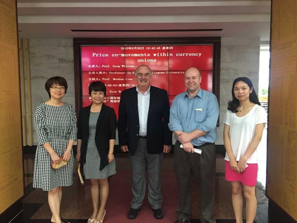 5月28日下午,加拿大滑铁卢大学瑞尼森学院国际事务办公室主任Ron Champion来访经济学科,经济学院国际教育合作中心主任Chris White等在经济楼三味咖啡厅与来宾进行了热烈的座谈。