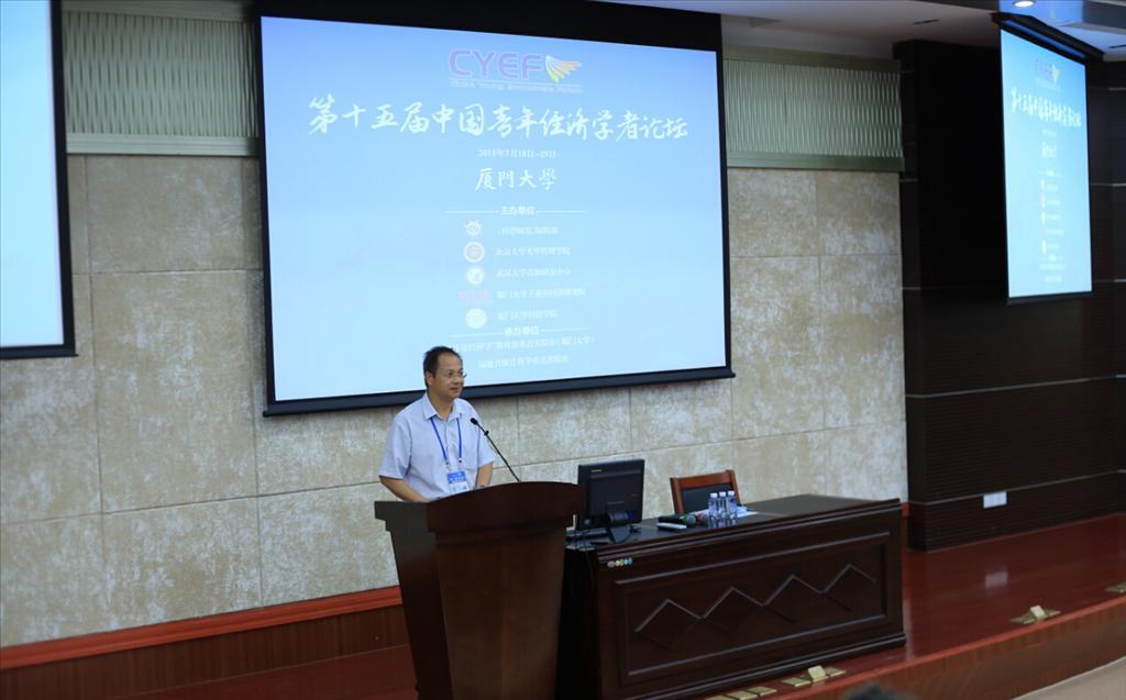 2015年7月18日上午,第十五届中国青年经济学者论坛在厦门大学经济楼隆重开幕,厦门大学经济学院党委书记雷根强教授主持开幕式。