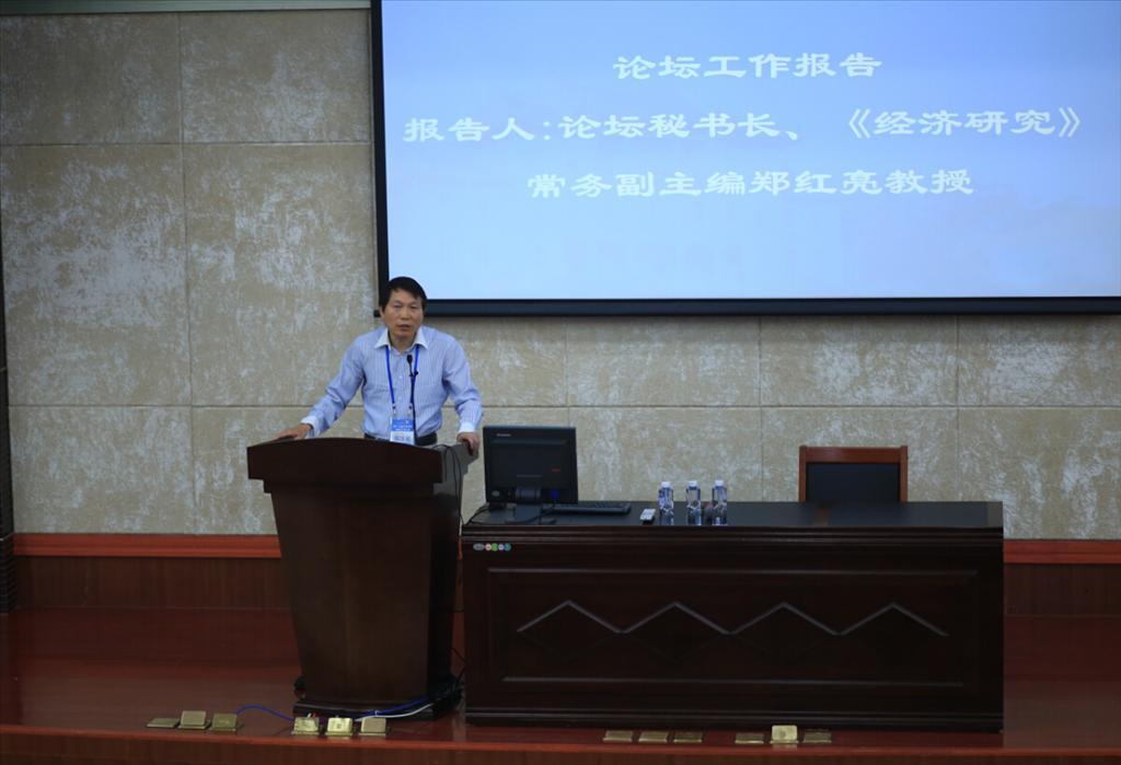 中国青年经济学者论坛秘书长、《经济研究》常务副主编郑红亮研究员做论坛工作报告,他介绍了论坛近一年的筹备情况,今年的论坛总共收到450余篇论文,再创新纪录,共有150余篇论文入选进行报告交流。在英文分论坛方面,共有约50篇论文投稿,其中海外学者投稿居多,共有26篇英文论文入选。