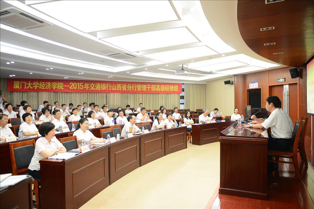 7月27日上午,2015年交通银行山西省分行管理干部高级研修班在厦门大学经济学院开班。经济学院党委书记雷根强教授,交通银行山西省分行党委书记、行长朱军先以及来自交通银行山西省分行的69名学员参加了开班典礼。