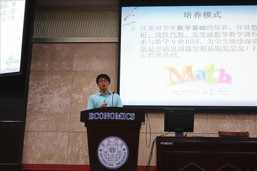 8月26日晚,经济学院和王亚南经济研究院(WISE)合办的金融学、统计学和经济学本科国际化试点班2015级招生宣讲会在经济楼N402举行。宣讲会吸引了经济学院500多名新生和学生家长到场听讲。两院教师郭晔、林明、牛霖琳、张烁珣、钟威以及两院教学管理人员陈烽、陈雅萍、林嘉、王晓微和WISE经济学本科国际化班的在读学生代表参加宣讲会并作项目介绍。