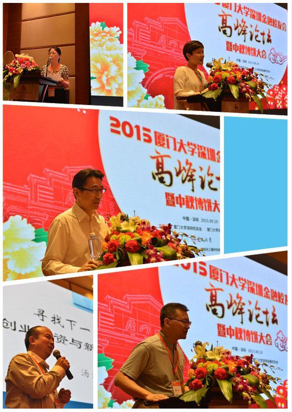 深圳校友会理事长孙小荔、厦门大学经济学院金融系主任郭晔老师、中跨促投资有限公司董事长陈申校友分别致辞,对校友会取得的成绩表示祝贺,对以后的发展壮大进行祝福。主题嘉宾演讲不断共鸣,上海凯石益正资产管理有限公司董事长陈继武校友以其22年投行、证券和基金从业经验,为校友激情洋溢地讲解了“谈股论金、骑牛看熊、笑对人生”;深圳市创新投资集团副总裁汤大杰校友以其丰富的企业管理、投融资业务及资本市场方面的经验论述“寻找下一个风口——创业投资与新兴产业发展”。诸位校友以自身工作经历,解读了当前金融形势,带来强大的金融盛宴。