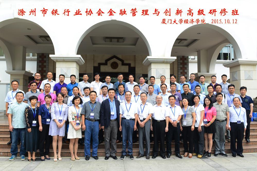 10月12日上午,滁州市银行业协会金融管理与创新高级研修班在厦门大学经济学院开班。经济学院副院长朱孟楠教授,滁州市银监分局调研员、滁州市银行业协会常务副会长王海波同志以及来自滁州市银行业52名董事长、行长参加了开班典礼。