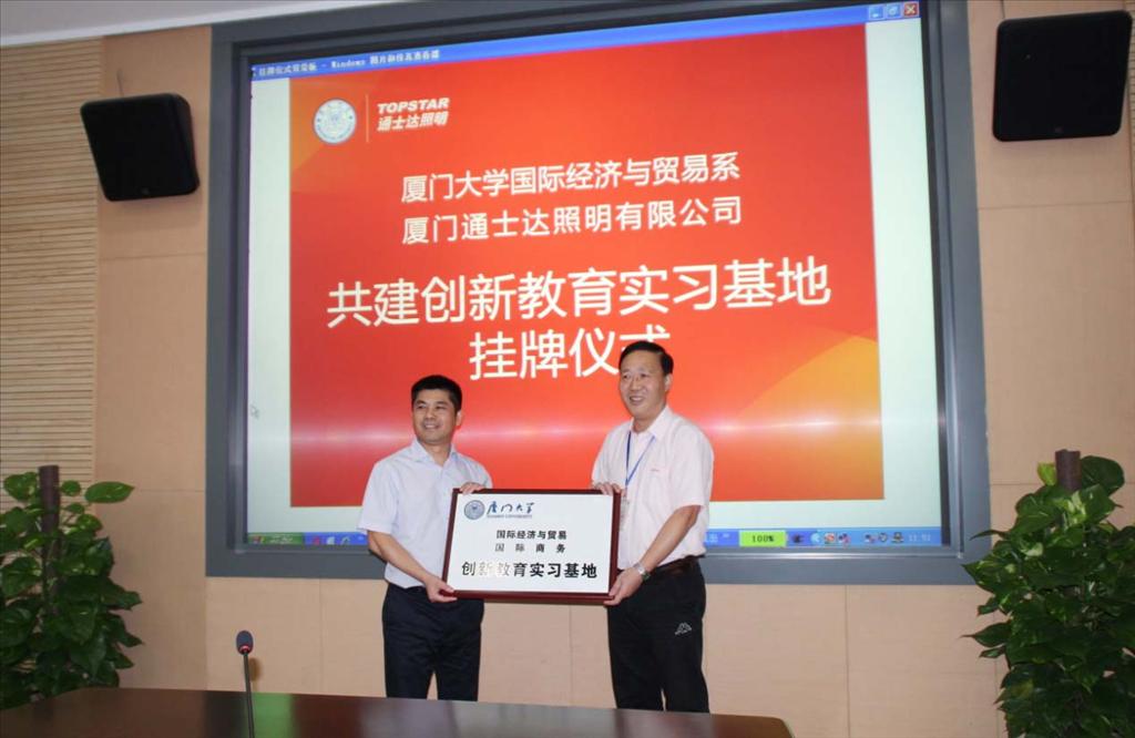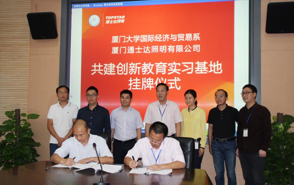 10月14日上午,厦门大学经济学院国际经济与贸易系与厦门通士达照明有限公司共建创新教育实习基地签约和挂牌仪式在厦门通士达照明有限公司举行。