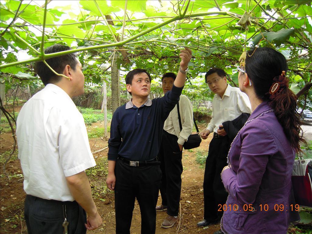 刘奇凡(左二)在贵州省黔南苗族布依族自治州三都水族自治县交梨乡,与基层干部现场调研如何通过发展葡萄种植,拓宽农民增收渠道
