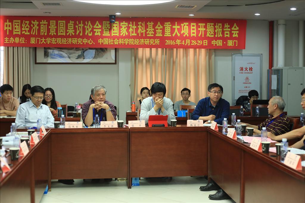 4月28-29日,厦门大学宏观经济研究中心与中国社会科学院经济研究所联合主办的“中国经济前景圆桌讨论会暨国家社会科学基金重大项目开题报告会”在厦门大学召开。南京大学校长助理范从来教授、浙江工业大学高级经济研究中心主任陈昆亭教授、陕西师范大学国际商学院谢攀副研究员、中国社会科学院经济研究所的张平教授、刘霞辉教授、袁富华教授、陈昌兵教授、张自然教授等一行,厦门大学经济研究所所长靳涛教授、副所长柏培文教授以及宏观经济研究中心师生50余人参加了本次会议。为期1.5天的会议,除课题组的前期研究成果汇报和开题研讨外,与会专家学者还进行了8场特邀报告,围绕以“需求结构转换与供给侧结构性改革”的主题从居民消费、经济增长、结构转型等方面介绍了自己最新的研究成果并展开了热烈研讨。