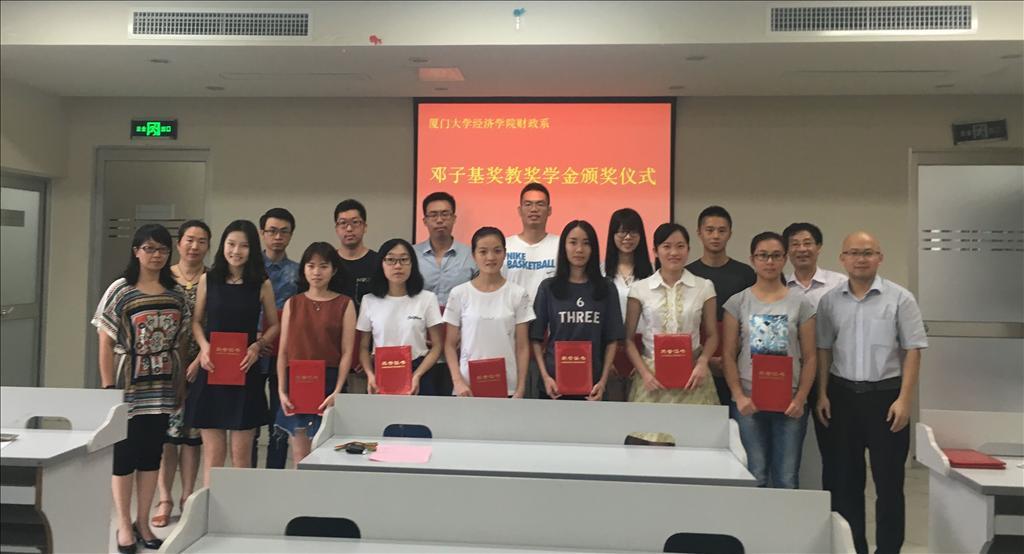 “邓子基奖教奖学基金”于1997年设立,至今年已是第十九届,共有本系60余位教师和200多名学生获奖。基金旨在弘扬邓老教书育人的高尚师德风范和财政系优良的教风学凤,奖励财政系在教学科研方面做出突出贡献的老师和品学兼优的学生。从2010年起,该基金还用于资助本系年轻教师出国深造,不仅极大地激发了财政系全体师生的工作和学习热情,也很好地支持了厦大财政系和财政学科的建设和发展。