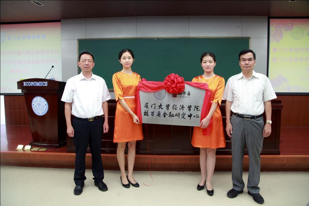 8月29日,厦门大学经济学院福万通金融研究中心、厦门大学经济学院福万通金融培训中心揭牌仪式在厦大经济楼N303隆重举行。厦门大学副校长杨斌与福建省农信联社理事长余军出席仪式并致辞,厦门大学经济学院副院长朱孟楠主持仪式。