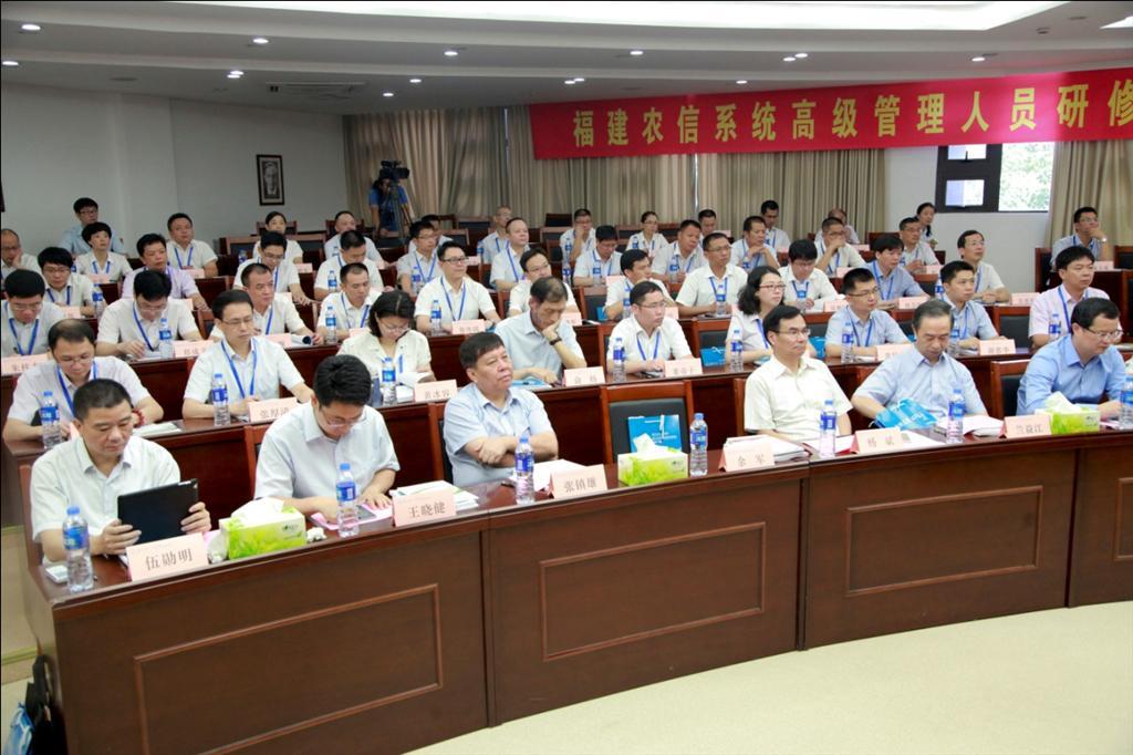 揭牌仪式结束后,由厦门大学经济学院EDP中心承办的福建省农信系统高级管理人员研修班第一期课程正式开班。雷根强书记、张镇雄监事长先后发表了开班致辞和开班动员讲话。来自全省农信系统的60余名高级管理人员参加了首期培训。此次培训为期5天,内容涵盖风险监管、产品营销、金融创新、企业战略管理、人力资源管理等主题。培训师资由自于高校和业界的专家组成,将分别从理论和实践两个方面进行精细化授课。