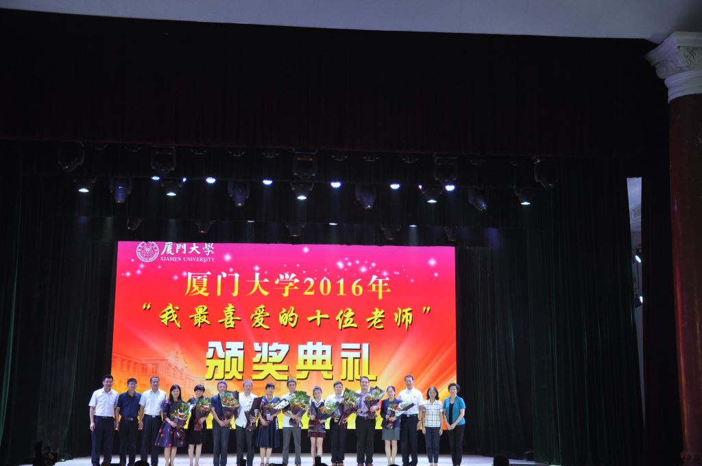 10月27日晚,厦门大学2016年“我最喜爱的十位老师”颁奖典礼在建南大会堂隆重举行。校领导、校各机关部处负责人、各院老师和学生代表参加了这次万众瞩目的颁奖仪式。据悉,本次评选活动由厦门大学学生会、厦门大学研究生会主办,由各院推荐候选人,再通过网络投票和现场评分、投票的形式选出十位获奖教师。财政系的童锦治老师在26位候选人中脱颖而出,成功当选。