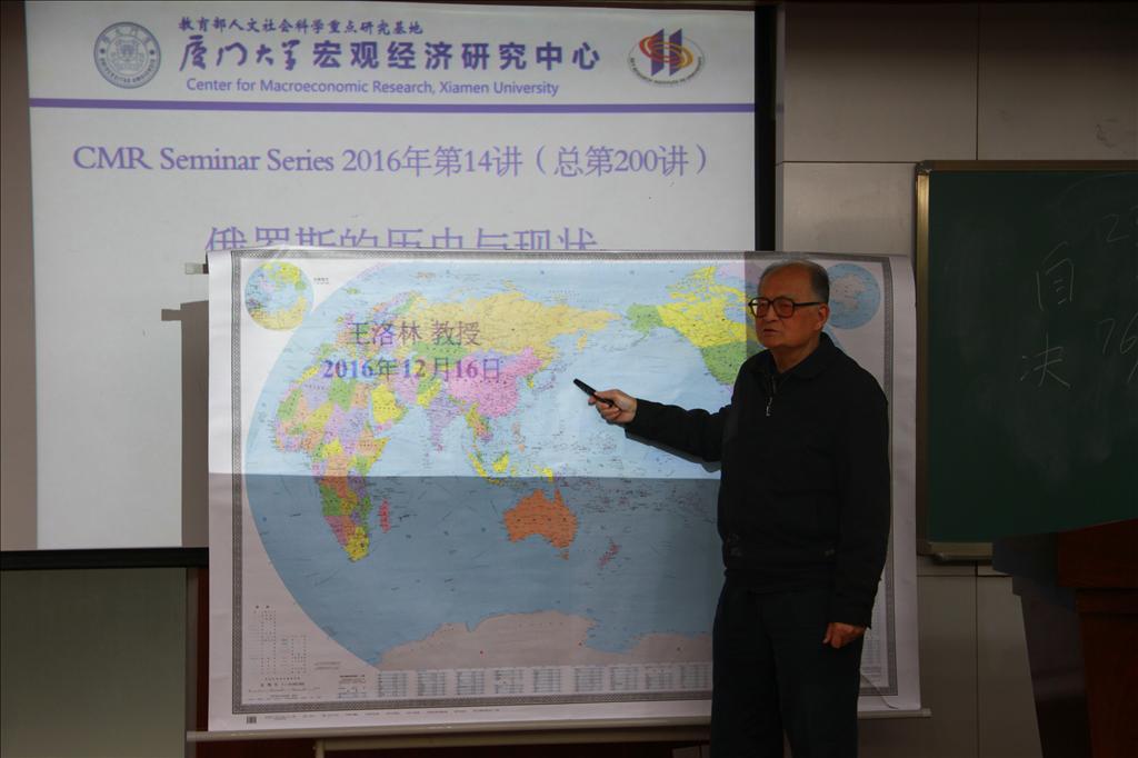12月16日下午,宏观经济研究中心2016年第14讲(总第200讲)Seminar 开始,王洛林教授作了题为“俄罗斯的历史与现状”的讲座,讲座由宏观经济研究中心副主任龚敏主持。王洛林教授首先从历史、宗教、地理等视角对俄罗斯的前世今生进行了深入详尽的分析。在有效的时间里,王洛林教授回顾了从沙俄、苏联、再到今天俄罗斯的演变过程,分析了导致今天动荡的国际政治关系的历史根源。