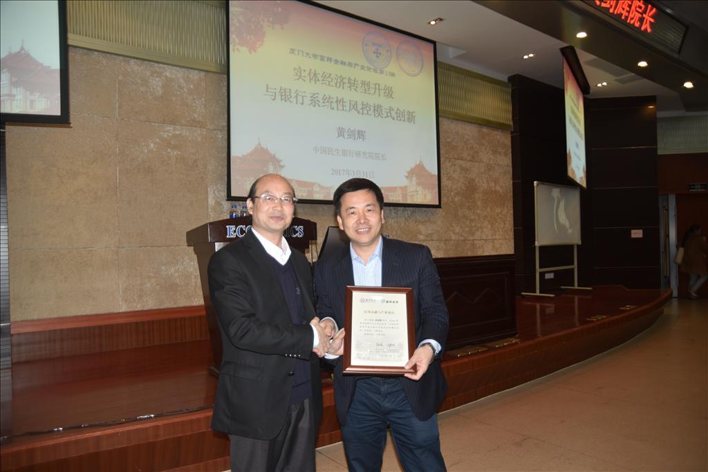 3月31日,中国民生银行研究院院长黄剑辉到访厦大经济学科,在经济楼N402进行了一场题为“实体经济转型升级与银行系统性风控模式创新”的学术讲座。300余名师生参加到场聆听。讲座由周颖刚教授主持,朱孟楠教授为黄剑辉院长颁授富邦金融与产业论坛讲座纪念牌。