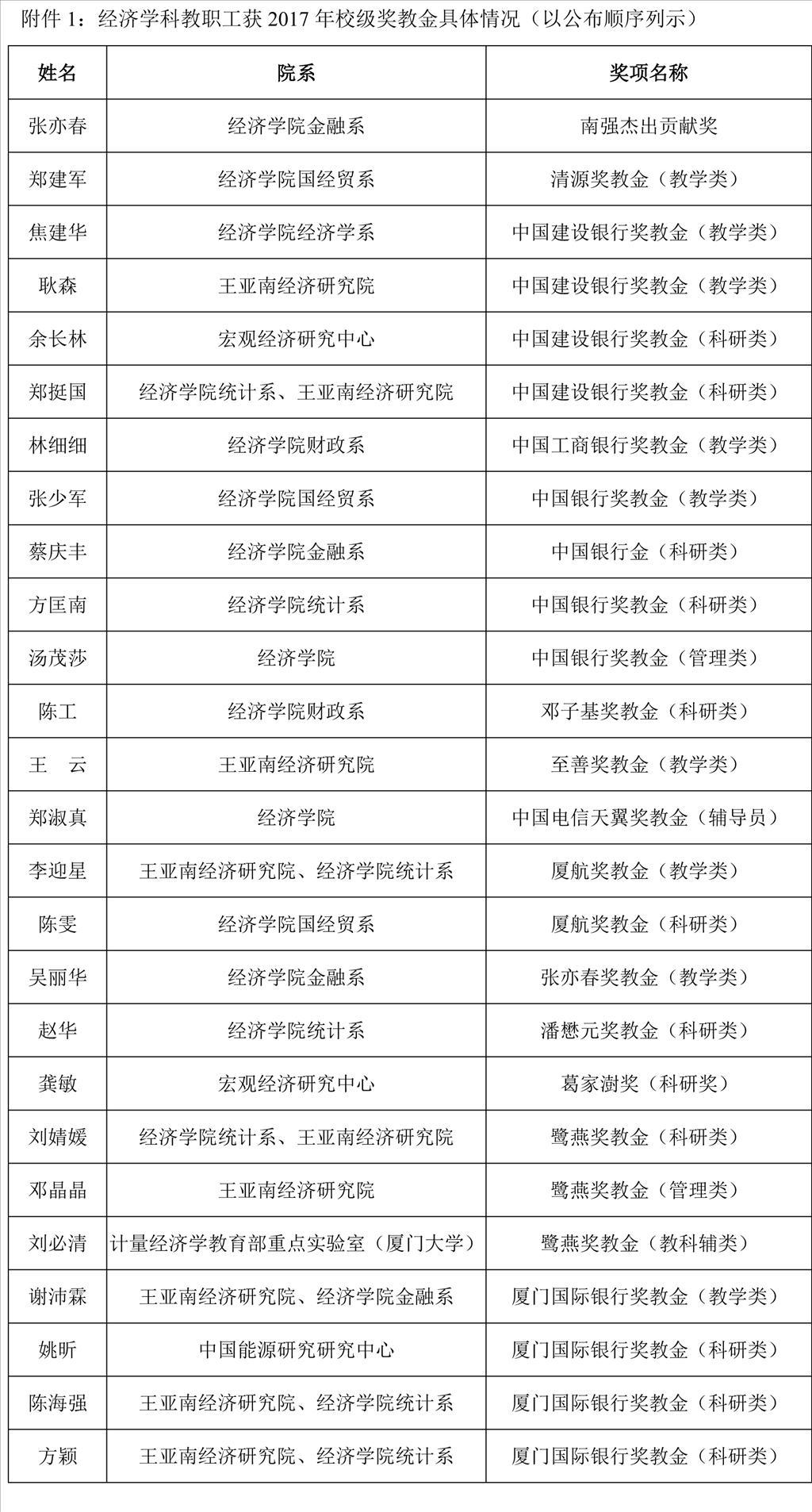 4月5日,厦门大学公布了2017年校庆期间奖教金、奖学金评选结果。经济学科26位老师、144位学生共170人获得个人奖项,其中张亦春教授获得“南强杰出贡献奖”。