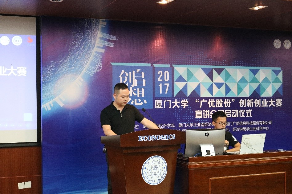 厦门大学“广优股份”创新创业大赛由厦门大学经济学院、厦门大学王亚南经济研究院与厦门广优信息科技股份有限公司联合主办,经济学院国际经济与贸易系、国贸系团总支学生会和经济学院学生会科创中心承办。大赛面向厦门大学全体在校生,具备核心竞争力且具有高成长潜力的创业项目和创始团队,既能赢取大赛奖金,还有机会获得全方位的创业培训与辅导,快速建立起创业过程中所需的全要素知识体系。