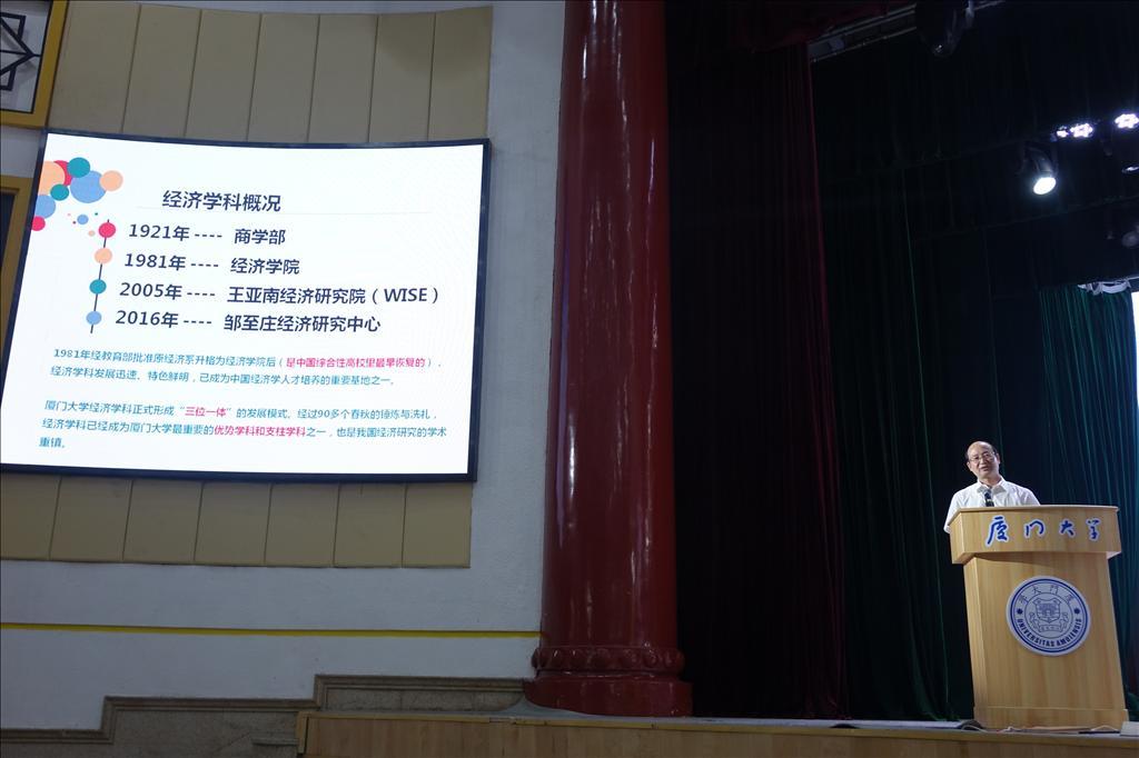 2017年6月10日,厦门大学在校园内举行了2017年本科招生“校园开放日”活动。厦门大学经济学院副院长朱孟楠教授应邀出席厦门大学2017年本科招生宣讲会活动,并在建南大会堂为到场的考生及家长从全方位、多角度地介绍了经济学院、王亚南经济研究院的历史、现状、培养特色、学科优势等。