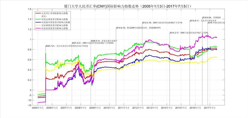 这一系列货币汇率指数是厦大研究团队运用定量分析进行经济系统数据分析的典范,运用现代计量经济学方法与工具,以数据分析为基础实证研究人民币汇率在国际上和亚洲地区的影响力,也可对人民币汇改等政策实施以及英国脱欧、美国大选等重大国际事件的影响进行了定量评估,增强了经济政策建议的科学性,是建设具有中国特色、高水平的、新型经济学智库的有益尝试。
