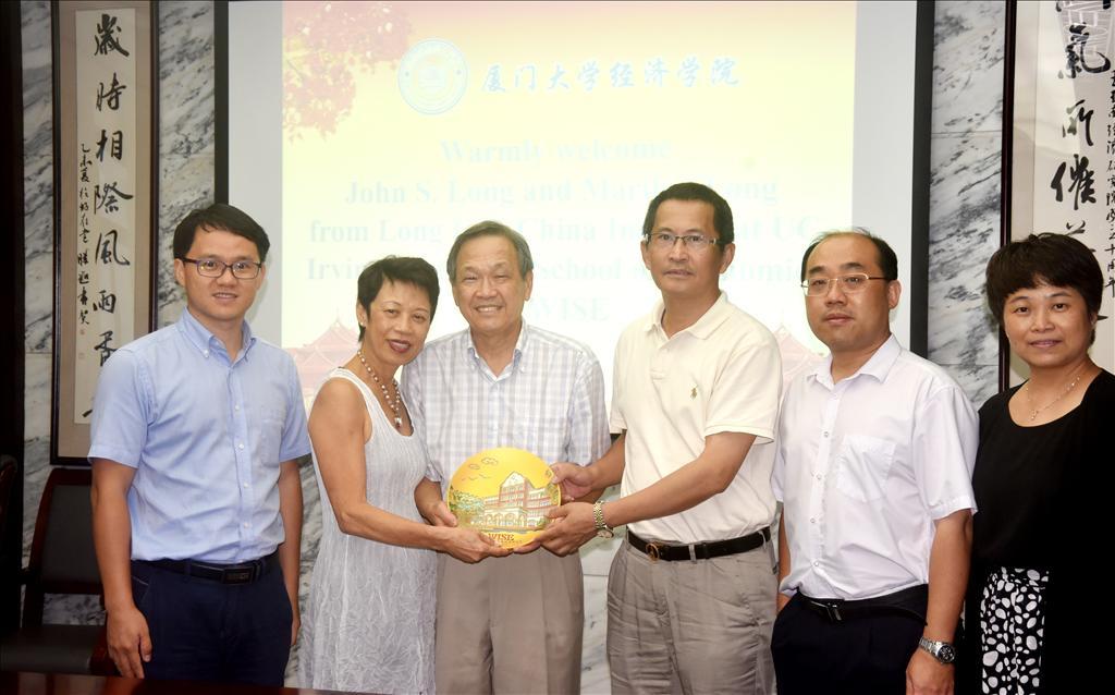 9月22日下午,加州大学欧文分校(UCI)梁氏中美研究院(Long Institute)创办人、美国梁氏家族基金会总裁梁仕源和梁秀莲夫妇(John S. and Marilyn Long)来访经济学科。